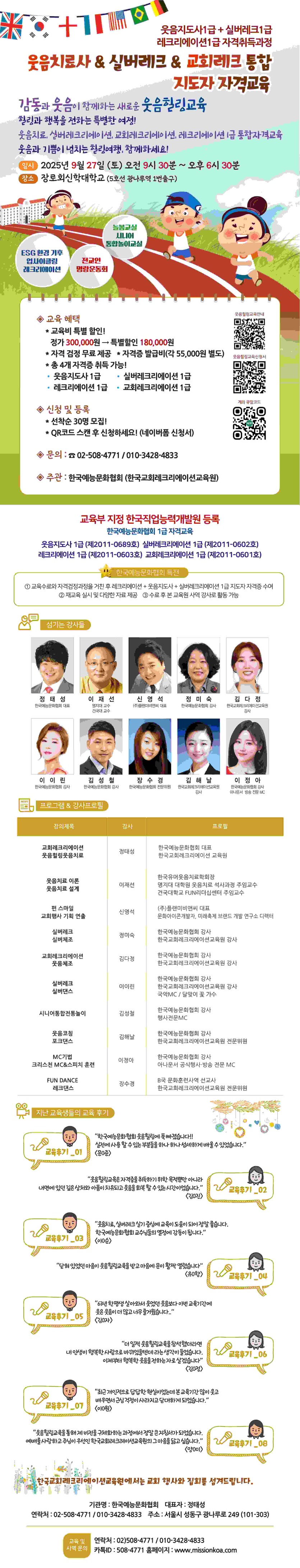 ★ 주최/주관 : 한국교회레크리에이션교육원 / 한국예능문화협회